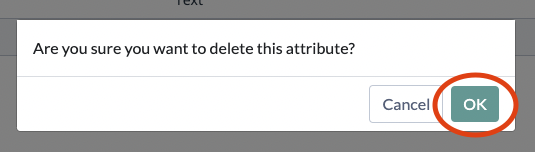 4. The system will prompt you to confirm you want to delete the attribute. Click "OK" to confirm.